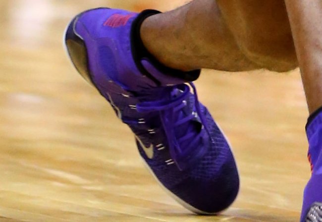 虽然客场对阵太阳的结果不尽如人意,但Kobe Bryant的表现和他脚上的球鞋依旧令人欣喜。一款全新客场配色Kobe 9 Elite PE曝光,湖人紫作为鞋身主色调搭配灰色以及红色细节,整体风格颇为诱人。