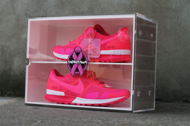 新泽西店铺Sneaker Room再次联合NIKEiD打造限量鞋款为防治乳癌筹集慈善款项。此番双方选择Air Pegasus 83/30鞋款,以标志性的粉红色作为鞋身主色调并配以白色细节,限量制作31双,每双均附有独立编号、特别鞋扣以及特殊鞋盒包装。邮件发至bc.sneakeroom@gmail.com便能参与竞标,竞标过程将每日三次通过snkrroom.com以及sneakerroom instagram账号更新,美国东部时间10月31日晚上8点截标。