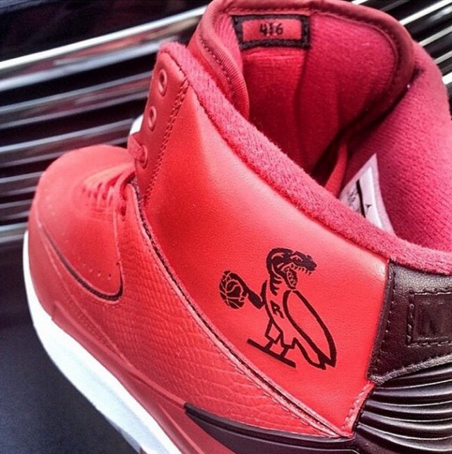 Drake与Jordan Brand的关系更近一步,鉴于他对于猛龙队的喜爱和支持,Jordan Brand为Drake特别打造了一双全新的OVO x Air Jordan 2。鞋款以红色搭配黑色,鞋领附有融合猛龙队标以及OVO logo的全新标识,鞋舌内侧则锈有多伦多地区号码416。