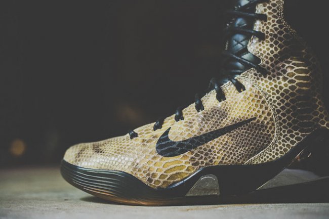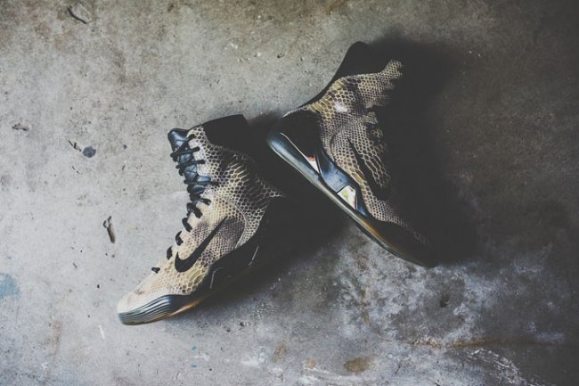 这款 Nike Kobe 9 EXT QS "Snakeskin" 配色现已于北美地区率先发售,鞋款延续了 Kobe 9 高帮的轮廓线条,再从科比“黑曼巴”的外号中汲取灵感,鞋身通体以鳞片状的蛇纹皮革包裹,辅以中底的镜面装饰等细节,让整款鞋与原版有着不一样的味道,极具野性的感觉。