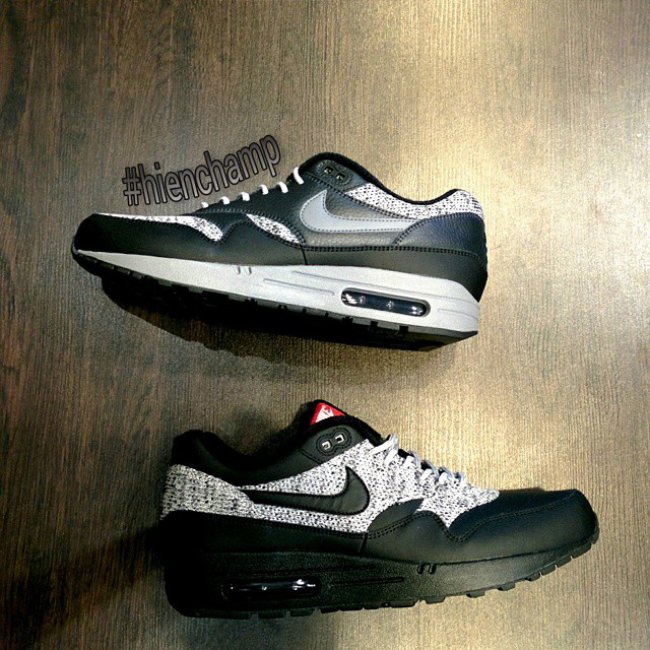今天网络上还曝光了一款很有意思的 Nike Air Max 1 新品,这款名为 ”Two-Face“ 的新配色以经典的反色设计呈现。其中左脚以大面积的黑色皮革搭配些许灰色编织材质构成;而右脚则以对半的灰色编织材质搭配黑色皮革打造,并分别搭载上白色以及黑色中底而成。据悉这款 Air Max 1 ”Two-Face“ 或将于 2015 年发售,具体日期还有待确定。