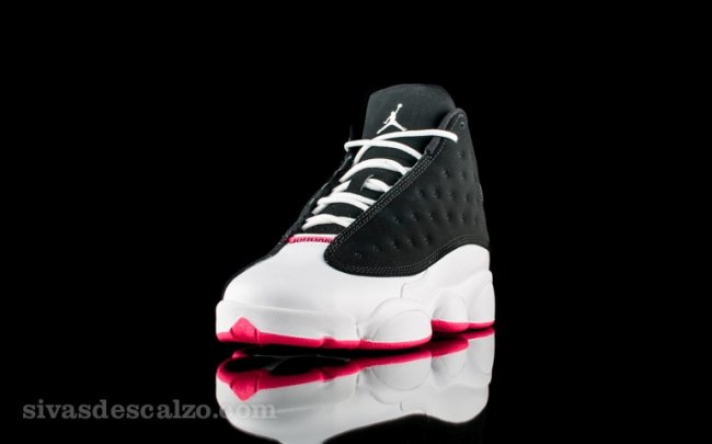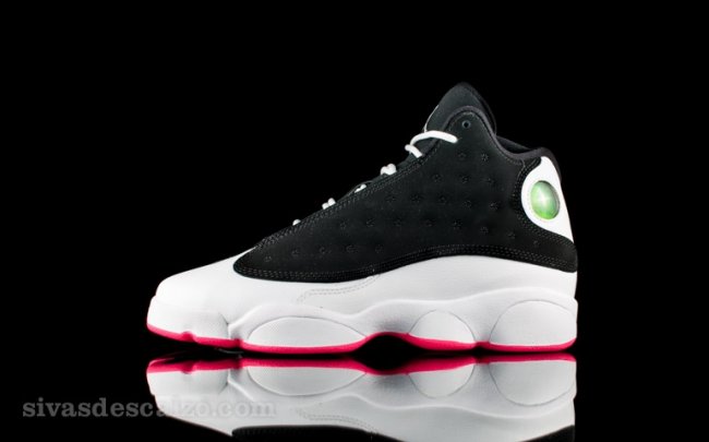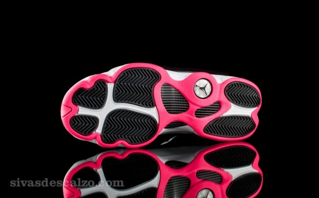 为照顾日渐增多的女性球鞋爱好者群体,Jordan Brand近些年也增加了对女性专属配色鞋款的开发。而眼前这双Air Jordan 13 GS 白黑粉就是专门为女生们打造的特别配色,白色鞋身搭配黑色麂皮鞋面,令鞋款黑白分明,鲜艳的粉红色点缀在外底处为鞋款增加了些许俏皮。此鞋款将于近日正式上市,货号:439358-008。