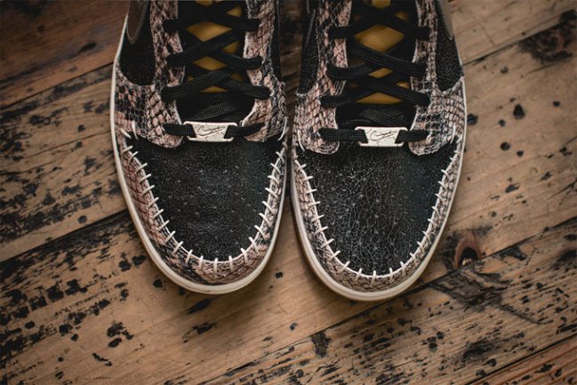 除了 Kobe 9 EXT 之外,Nike 日前同样将经典的蛇纹元素运动到了这款 Dunk CMFT PRM 之上,深棕色的蛇纹材质搭配上黑色裂纹皮革构成了这款 Dunk 的鞋身主体,搭配上显眼的银色 Swoosh 以及牛津色外底,整体风格野性十足。鞋款已从今日起正式发售。