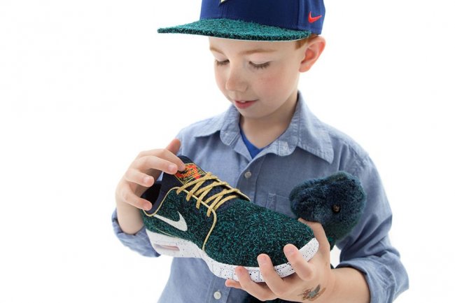 2010年11月,4岁的Chase Crouch在身体检查时一切正常,但就在那年的圣诞,头疼后的他出现了身体平衡的问题。经过Doernbecher医院的检查和大脑扫描后,发现了肿瘤。 治疗过程中一直陪伴Chase的好伙伴Dino(恐龙玩偶)给了他不少设计灵感,包括鞋款的配色以及鞋身的绒毛材质,另外,C7 logo代表着Chase设计这双鞋款的年纪,AW77外套的内衬则印有Chase的脑部扫描图。 11月23日此双Nike Stefan Janoski Max Doernbecher将正式登陆美国地区,售价$115USD,货号719722-474。