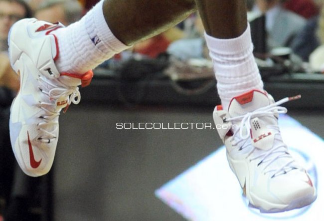 在今天主场迎战新奥尔良鹈鹕队的比赛中,“小皇帝”LeBron James表现出色砍下32分12篮板10助攻的三双成绩帮助克里夫兰骑士队以118-111拿下对手。值得一提的,身穿骑士主场白色队服的LeBron James今天也在比赛中穿着了两款Nike LeBron 12 PE登场。分别是之前曝光过的骑士主场配色与老兵节配色。