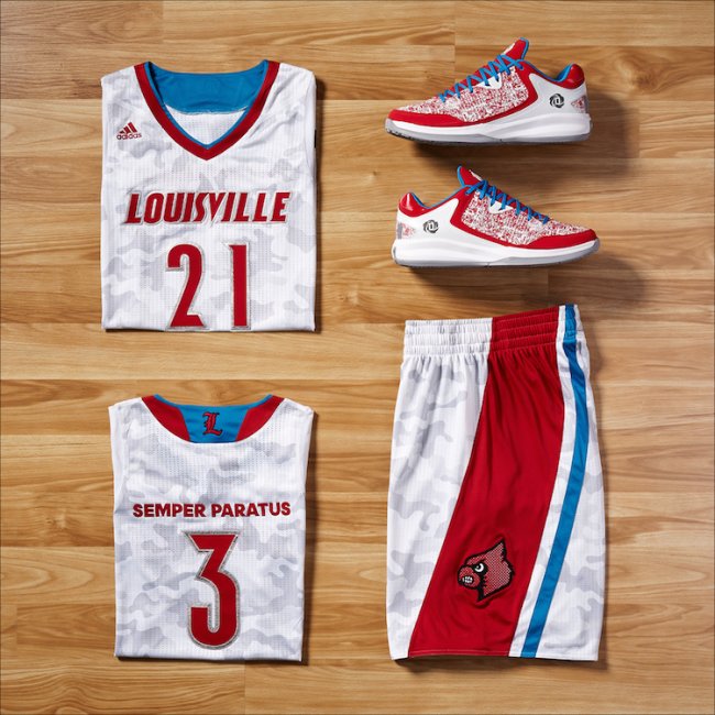 adidas与路易斯维尔大学一同发布为将于周五上演的军队经典赛而特别打造的纪念队服,同时登场的还有配套主题设计的adidas D Rose 773 III以及D Rose Englewood III,均为球队球员PE。