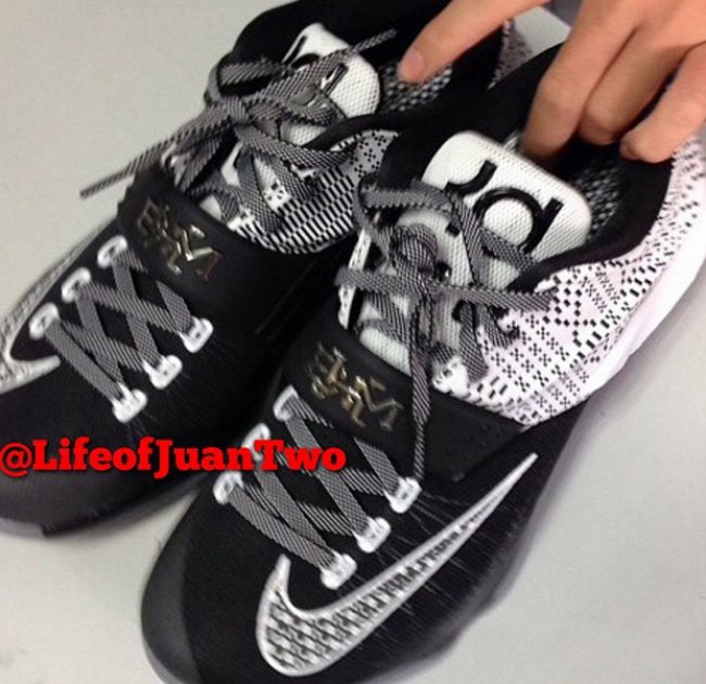 每年二月,Nike 都会推出一系列“黑人历史月”主题的球鞋。此番网上率先披露了 Nike KD7 “BHM” 配色的谍照,一改去年的紫色风格,此次的 KD7 “BHM” 回归简单,采用黑白色为基调,辅以金色 BHM Logo,而鞋身上布满的民族风格印花则为鞋款带来了与众不同的视觉感受。