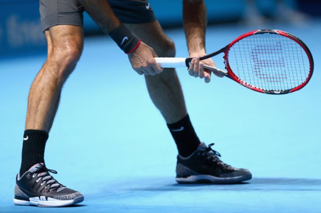 费德勒在前两天的 ATP 世界巡回年终赛比赛中,亲自上脚了一款 “Black Cement” 配色的 NikeCourt Zoom Vapor AJ3 by Jordan。鞋款由传奇设计师 Tinker Hatfield 亲自操刀,他将 Vapor 9.5 的运动创新与 Air Jordan 3 的态度和场外吸引力相结合。此款配色也已经在美国时间 11 月 10 日限量发售完毕。