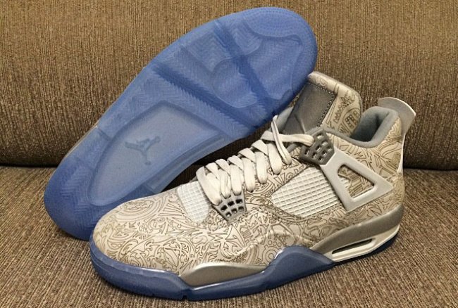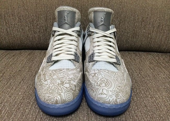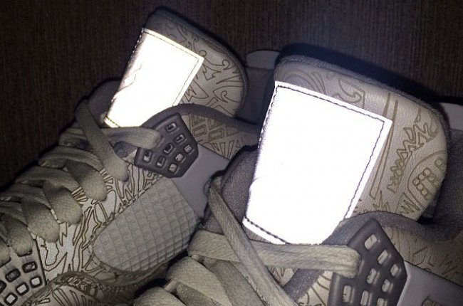 Air Jordan系列的30周年即将到来,镭射元素也将回归,继夜光镭射Air Jordan 1曝出实物后,以同样细节进行设计的Air Jordan 4也曝出了实物照。鞋身布满AJ元素的镭射图腾,细节配以金属银色以及白色,鞋舌以反光材质装饰,再配以冰蓝色大底。