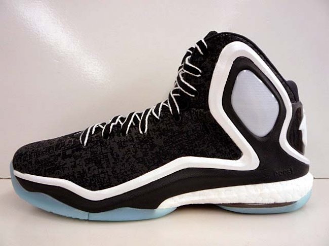 adidas D Rose 5 Boost全新配色曝光,鞋款以简洁的黑白色调呈现,黑色鞋面搭配白色中底与Boost缓震,并辅以清透的蓝色水晶外底。SprintWeb鞋面上的透气孔被独特的印花图案取代,鞋款整体极为素雅干净。