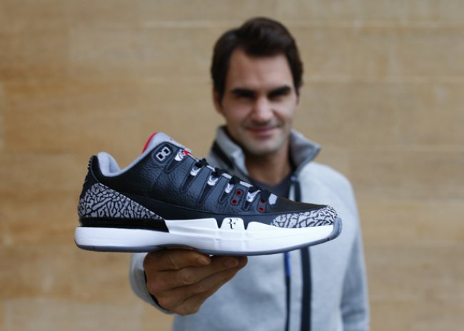 NIKECOURT Zoom Vapor AJ3沿用了Nike Zoom Vapor 9.5 Tour的标志性细节设计。作为费德勒的首选鞋款,它的细节包括动态贴合技术(这种技术能够让球鞋贴合穿着者的脚部)、具有缓震和支撑功能的 Phylon 中底嵌入Nike Zoom单元以及低调的鞋面。柔滑光亮的黑色NIKECOURT Zoom Vapor AJ3配有宽大的Air Jordan 3飞人刺绣鞋舌、RF签名标识、优质皮革、爆裂纹和后跟上十分抢眼的 Nike Air 品牌标识。