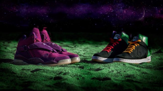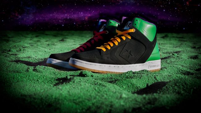 过去的十八年间,提到Space Jam能令人联想到的球鞋几乎只有Air Jordan 11,而近日Converse发布全新系列鞋款,配色灵感正是源于这部篮球题材的卡通电影。“太空侵略者”系列包含一双Aero Jam以及一双Weapon Mid,其中Larry Johnson的签名鞋款Aero Jam的色调就是源于电影中偷走他的篮球天赋的怪物,Bupkus,而在电影中作为裁判身份出现的火星人马文则是Weapon mid的色彩灵感。此系列现已在部分店铺发售。