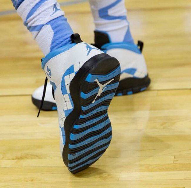 在过去几年中,Jordan Brand 曾为乔丹母校北卡罗来纳大学打造了无数 Air Jordan PE 鞋款,此番又有一款 Air Jordan 10 UNC PE 首次出现在了北卡大学篮球队队员的脚下。鞋款除了运用标志性的白北卡色系之外,中底位置还注入了与北卡球衣相匹配的格纹图案。