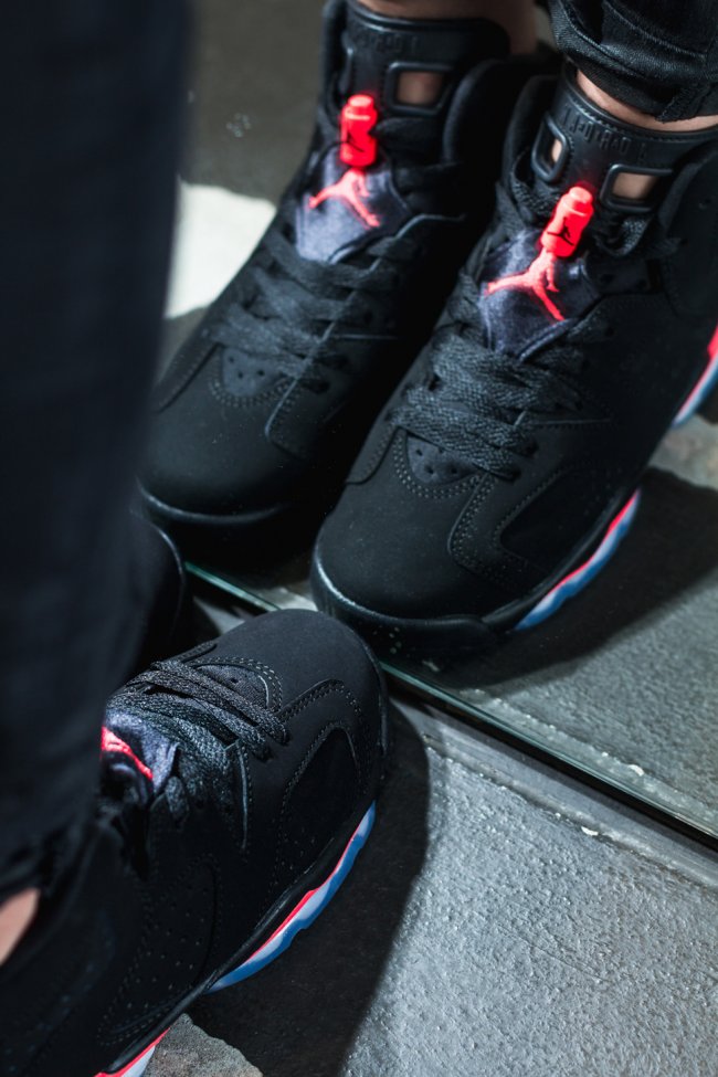 万众期待的Air Jordan 6 黑/射线红已于今日正式上市!这款全新复刻的鞋款由黑色牛磨砂皮革制作鞋面,并搭配水晶大底与射线红细节,完美呈现经典造型。Air Jordan 6 黑/射线红货号:385664-023,男码售价:1399RMB,GS:899RMB。你买到了吗?