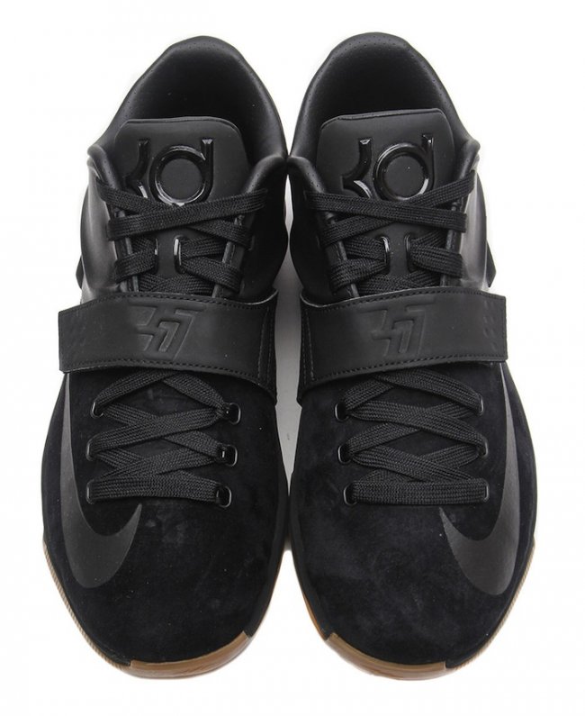 黑麂皮拼接 Posite 材质打造鞋身,皮质内衬搭配生胶大底,此款曝光已久的 KD7 EXT “Black Suede” 将于 12 月 13 日正式发售,货号 717593-001,而发售价高达 $200 美元。 带来此款配色的上脚实拍,黑色鞋身搭配生胶大底,十分易于日常穿着搭配。