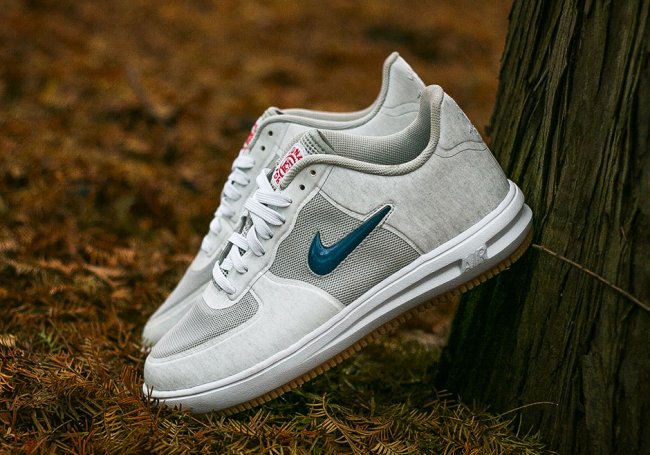 CLOT 步入第 10 个年头,即将携手 NSW 在经典 AF1 鞋型上打造全新联名作品,继之前曝光谍照后,现在有了更多的清晰实物图片亮相。 多种材质拼接打造鞋面,两只鞋分别点缀红色和蓝色的 Jewel Swoosh,鞋舌和后跟呈现出 CLOT 10 周年纪念 logo,预计将在 2015 年初正式发售。 相关信息: CLOT x Nike Lunar Force 1 Jewel 全新联名款实物曝光