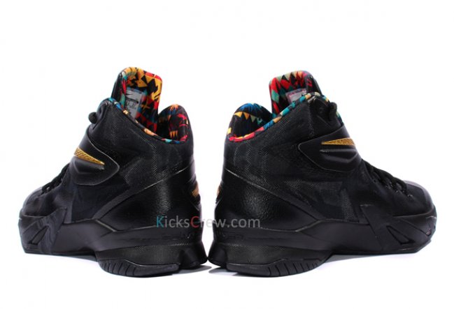 或将成为 WTT 配色首次市售的球鞋,Nike Zoom Soldier 8 “Watch The Throne” 已经曝光了实物,今天带来更多清晰图赏。 深色鞋身点缀金黄 LBJ Logo 和 Swoosh,多彩内衬的点缀增添了不少的活力。 货号: 688579-070 售价: $135