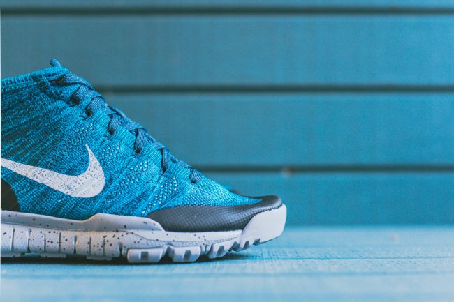 Nike Flyknit Trainer Chukka SFB 迎来新款搭配色发售,采用蓝色 Flyknit 鞋面打造,搭配白灰泼墨中底。鞋身的黑色材质覆盖起到了别样的点缀效果,带来了一些与以往配色所不同的感受。