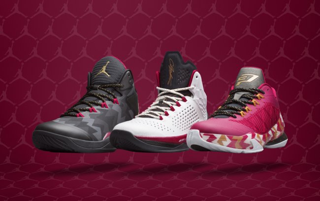 Jordan Brand 2014 圣诞系列包含了 Jordan Melo M11、Jordan CP3.VII 和 Jordan Super.Fly 3 三款球鞋,均以 Cardinal 配色为基础,鞋垫上的背号标识则带有十足的 Air Jordan 7 风味。