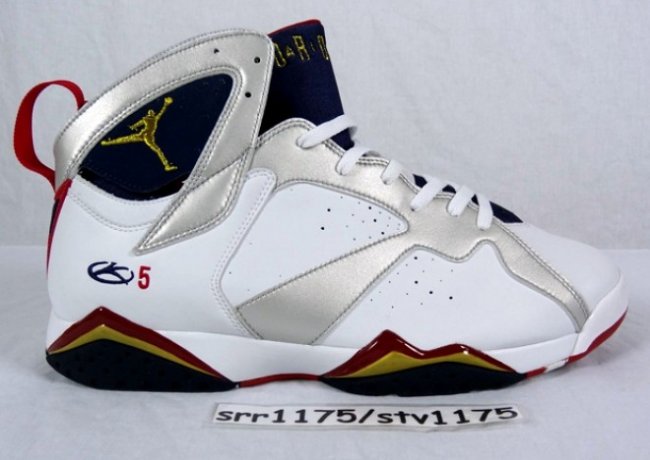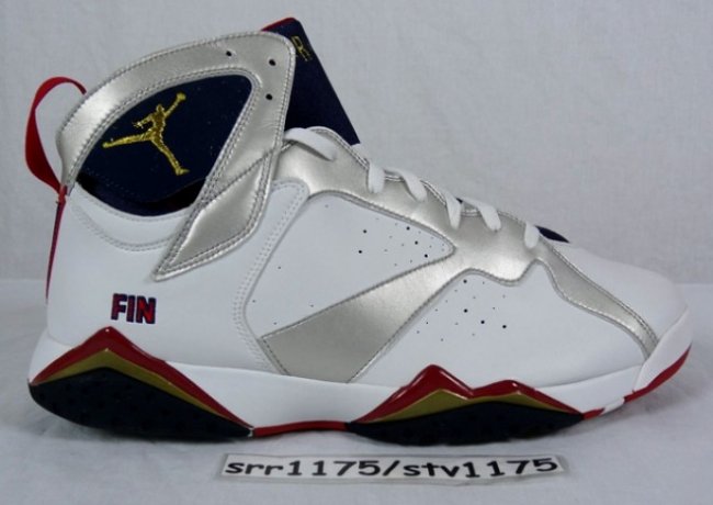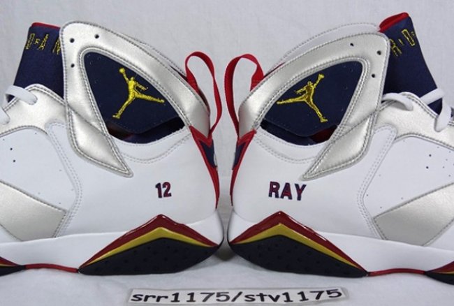 Jordan Brand 在经典的 Air Jordan 7 奥运配色基础上,为旗下多位大将打造了专属版 PE 球鞋。 原有鞋型和配色并未做变更,在鞋帮上的刺绣则表明了它们各自的身份,分别是贾森.基德、迈克尔.芬利、雷.阿伦和卡梅隆.安东尼。