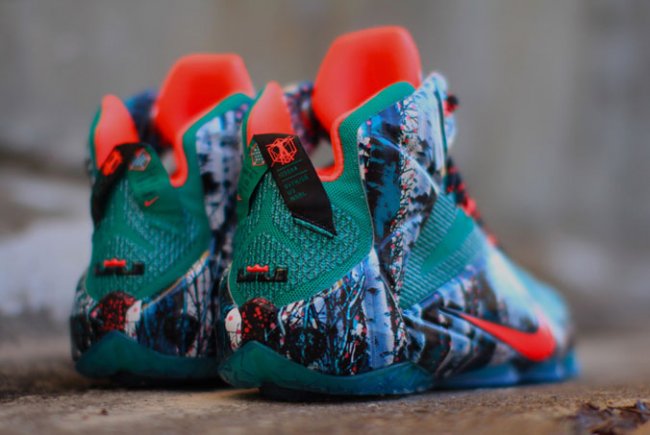 今年的詹姆斯圣诞战靴将以特别的桦树装扮登场,以詹姆斯的家乡俄亥俄州 Akron 城的冬季桦木为灵感来源,以祖母绿鞋面搭配带有桦树纹理的 Posite 材质。詹姆斯将在圣诞节当天的比赛中穿着这款球鞋,那天的对手正好是老东家热火队,正式的市售日期为 12 月 25 日。