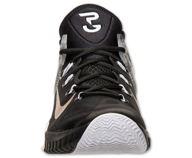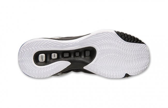黑白灰鞋身点缀金黄色 Swoosh,鞋舌上的 PG Logo 表明了它的身份。