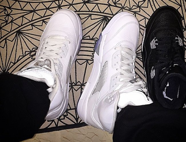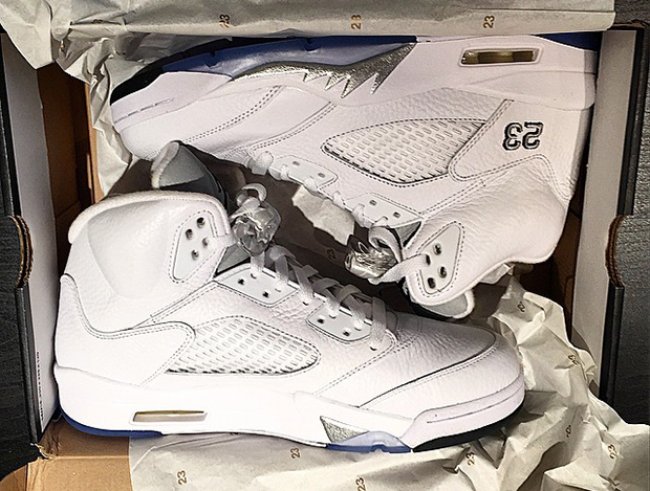 带来更多关于 Air Jordan 5 "White/Metallic" 白/金属银配色的实物图片。 白色荔枝皮鞋身,搭配经典的 3M 反光银灰鞋舌,点缀灰色细节,蓝色水晶大底进一步凸显亮点,将于 2015 年春季发售。 相关信息: Air Jordan 5 白/金属银高清图赏