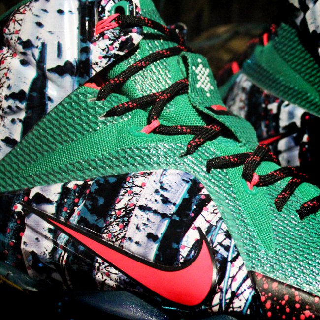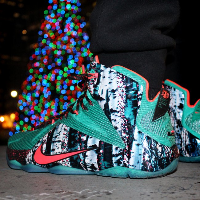 Nike Basketball 旗下多款圣诞战靴将于 25 日正式登陆 nike.com 中国官网,带来詹姆斯战靴 LeBron 12 “Akron Birch” 上脚实拍。 灵感源自俄亥俄州阿克伦市的冬季风光,并将桦树图案巧妙融入鞋面设计。黑色和超冲压红交织的细小斑点与迷彩图案相互交融,营造出浓郁的季节色彩。而位于鞋舌提环上、以小小的六边形构成的白色雪花,则为鞋款带来了不容忽略的细节亮点。 货号:707902-363 发售日期:12 月 25 日