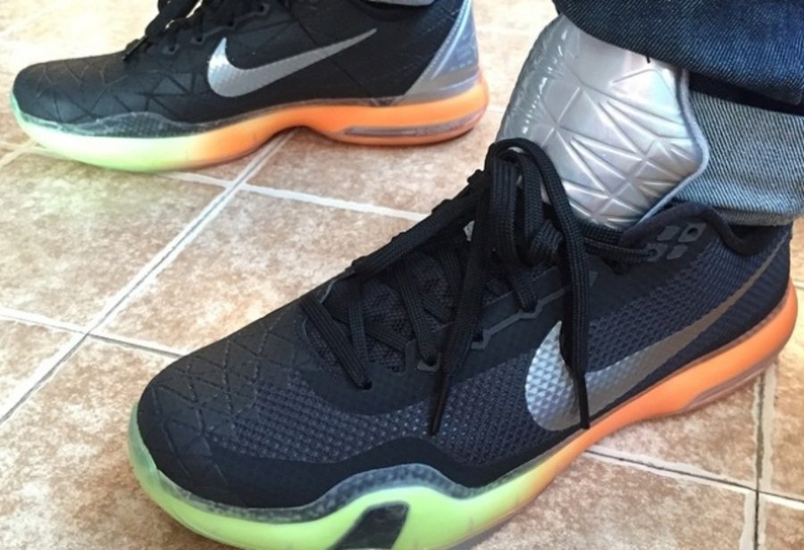 全明星配色的 Nike Kobe 10 ASG 继续曝光实物图片,或将在 2 月 14 日正式发售。黑色鞋面点缀银色 Swoosh 、后跟包裹和鞋舌,银色部分似乎带有 3M 反光效果。大底则采用了类似 Air Max 2015 般的渐变色彩打造。