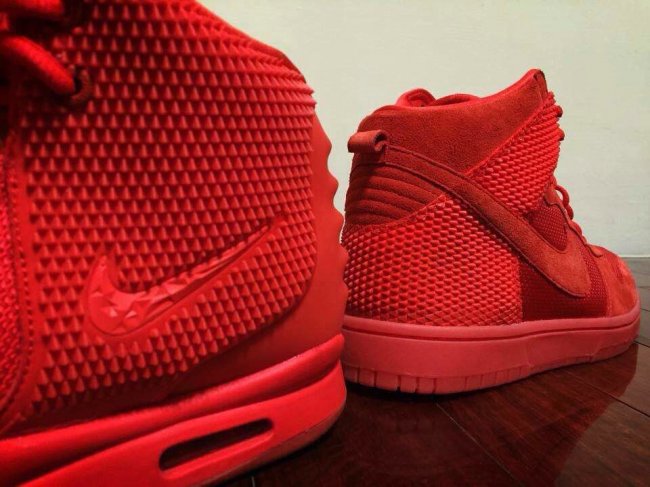 以超高人气的 Nike Air Yeezy 2 "Red October" 为灵感来源,将同样的全红装扮在 Nike Dunk High 高帮鞋型上呈现。