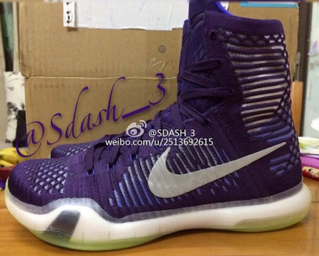 Kobe 10 High 高帮鞋型继续曝光实物图片,看来科比 10 代战靴也将延续上一代的高低帮设计,高帮版本采用了同低帮版本一样的鞋底设计,但鞋面则采用了 Flyknit 编织材料打造,同上一代 Elite 精英版本的鞋面设计颇为相似。