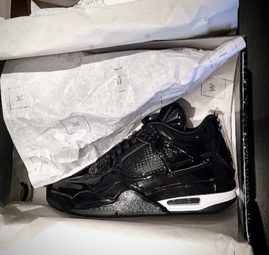 Jordan Lab 的新成员 11Lab4 将经典的漆皮元素在 Air Jordan 4 鞋型上全鞋面覆盖,已经曝光了黑色漆皮和红白两款配色,今天带来更多关于黑色漆皮配色的实物图片。 以颇具光泽的黑色漆皮鞋面呈现,鞋舌和后跟也以同样的材质打造,中底的后半部分则以白色点缀。