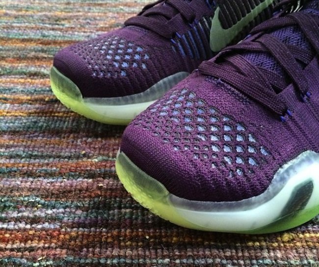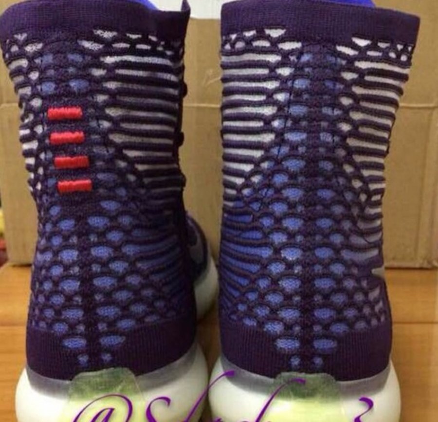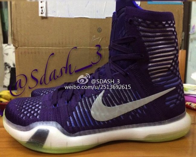 带来更多 Nike Kobe 10 High 高帮鞋型的实物图片,采用了同低帮鞋型一样的外底设计,但鞋面则延续了上一代鞋款的 Flyknit 编织材质,或许也将以 Elite 精英版命名。 首款曝光的高帮鞋型以蓝紫色呈现,搭配 3M 反光 Swoosh。