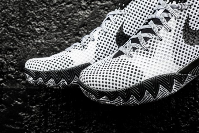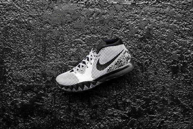 欧文战靴也将加入今年的 BHM 阵容。Nike Kyrie 1 “BHM” 黑人月配色将于 1 月 19 日正式发售,在凶猛的剑齿造型鞋身上,以白色网布覆盖黑色背景呈现出独特的鞋面效果,黑色 Swoosh 和鞋底的搭配则起到了反差点缀的作用。
