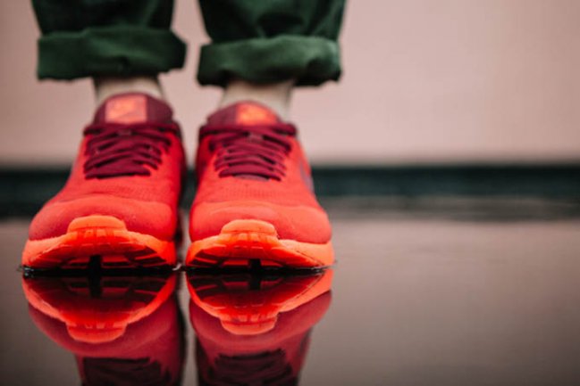 带来 Nike Air Max 1 Ultra Moire “University Red” 上脚实拍,在经典鞋型上以全新材质和设计打造鞋面,此番以校园红呈现,上脚效果颇为抢眼。