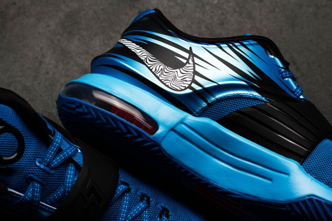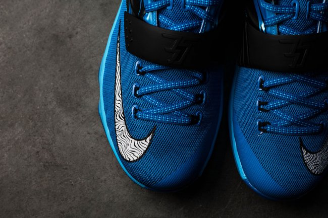 带来蓝色公路迷彩配色 KD7 的全新实物图片,以俄克拉荷马城为灵感来源,采用蓝色作为主色调打造,Hyperposite 材质和鞋身 Swoosh 都以黑色纹理装饰,整体感受颇为飘逸。 货号:653996-414