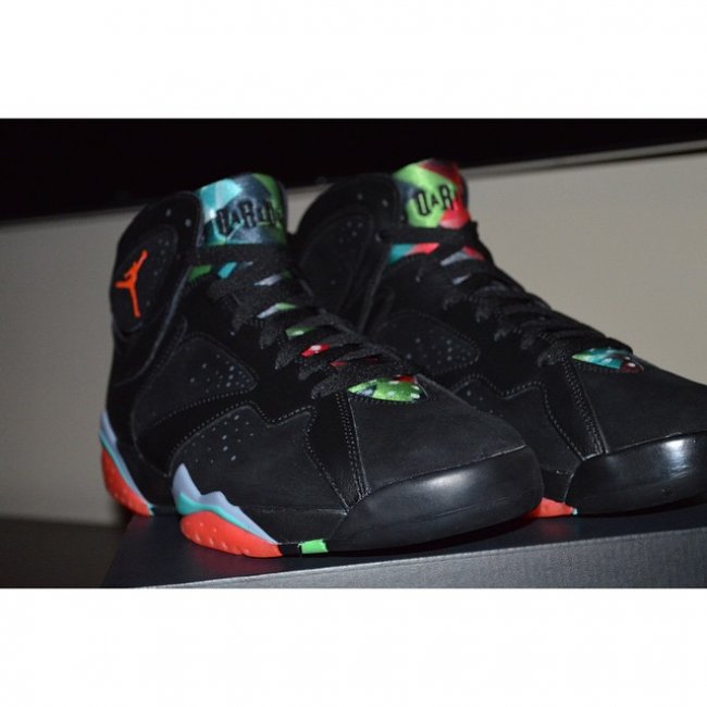 Air Jordan 7 “Marvin the Martian” 火星人马文曝光更多实物图片,以华纳卡通人物为设计灵感来源,鞋身采用麂皮和皮革打造,质感十足,而细节则采用了绿红水蓝色打造,卡通形象跃然眼前,将于 3 月 7 日正式发售。 货号:705350-007 发售日期:3 月 7 日