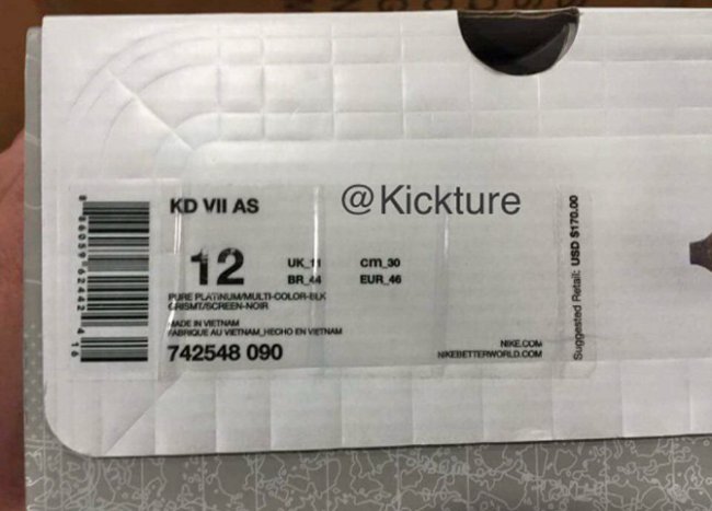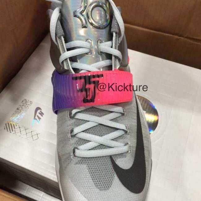 KD7 全明星配色将于 2 月 13 日正式发售,此番实物图片亮相网络,采用了灰色鞋面点缀黑色 Swoosh,丰富的细节则以多样的方式呈现,粉紫渐变魔术贴、鞋舌和Posite 材质的特殊光泽都为全明星配色增添了更多的亮点。