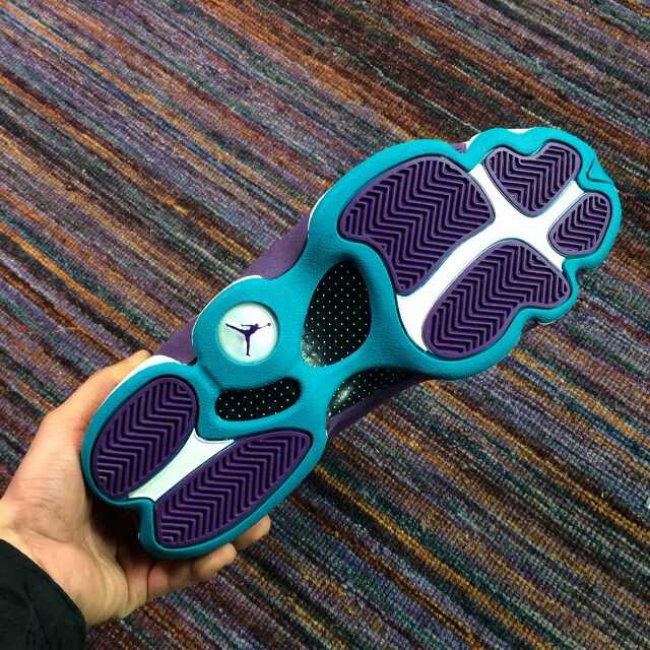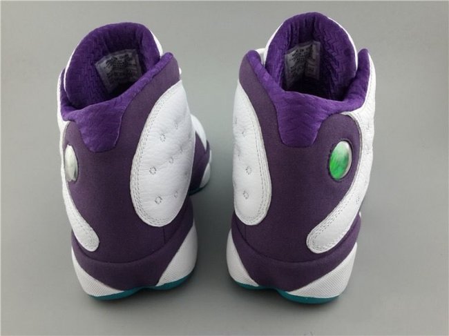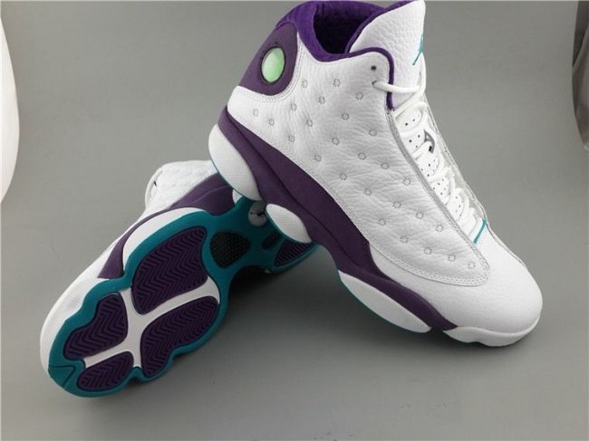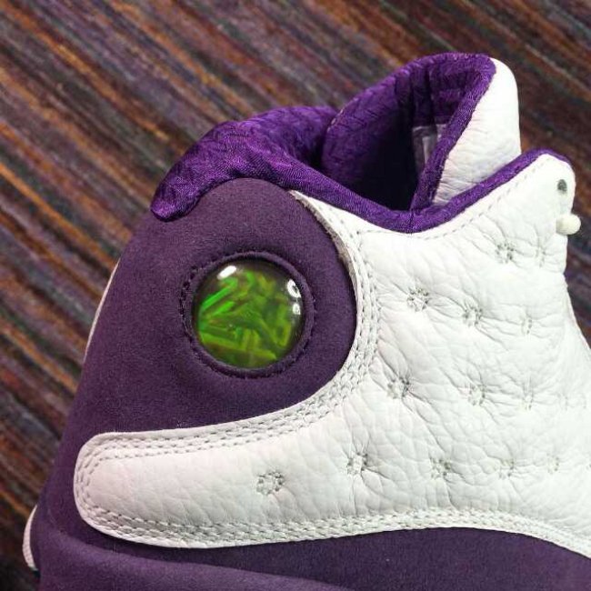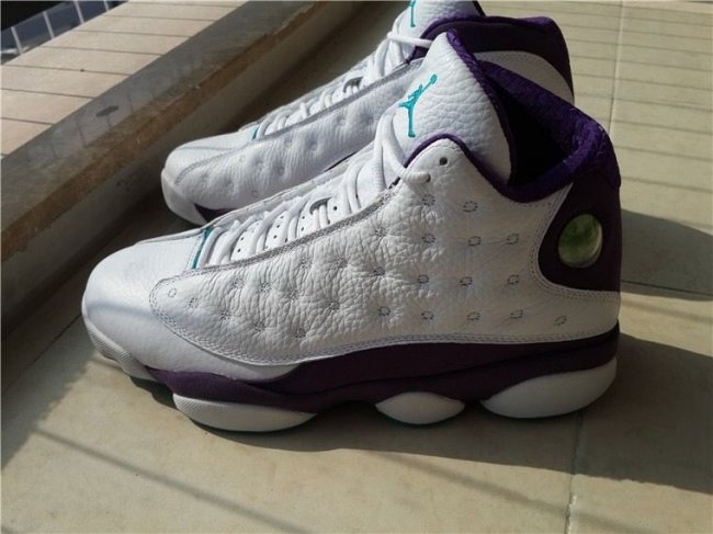 黄蜂配色的 Air Jordan 13 “Hornets” 继续曝光更多实物图片,暂无明确的发售信息,以优质的白色皮革鞋身搭配紫色细节,内衬则以绒布面料打造。 鞋底采用水绿色点缀,整体呈现的黄蜂球队配色,以简洁的色彩搭配,带来十足的活力感受。