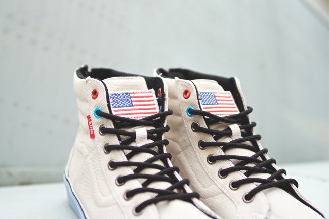 VANS 旗下高端产品线 VANS Vault 携手知名鞋店 Sole Classics 打造联名鞋款,Sole Classics x Vans Vault Sk8-Hi Reissue Zip LX “A-8SC” 以第一个登上月球的宇航员阿姆斯特朗为灵感来源,以白色尼龙鞋面呈现出 NASA 太空服的质感感受,浅蓝色中底则显示出天空氛围,鞋舌上带有美国国旗,后跟的拉链装置也使得整体感受颇为特别。将于 1 月 31 日在 Sole Classics 发售。