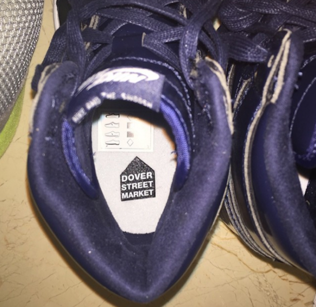 Dover Street Market x Air Jordan 1 实物谍照曝光,从鞋垫图案来看,此款球鞋为川久保玲旗下时尚概念店铺 Dover Street Market 携手 Jordan Brand 的联名之作。 采用海军蓝漆皮鞋面打造,整体也以海军蓝呈现,搭配白色中底,目前尚无发售信息,我们将持续关注。