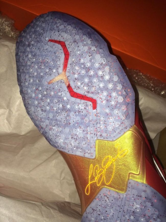 LeBron 11 “Gloria” Sample 样品现身 eBay,采用红色 Hyperfuse 搭配橙色 Posite 材质,鞋身 Swoosh 采用银色点缀,水晶大底带有雪花装扮,或为向 Gloria James 致敬之作。