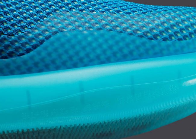 外底上设计有数百个用于抓地的“小颗粒”,就像赛车在高速行驶时紧抓地面的轮胎花纹一样错综复杂。这一最新抓地力系统与中底缓震系统串联在一起,张弛有度紧贴地面,时刻保持最大抓地力不受任何阻碍,就像赛车的高性能轮胎在赛道上的表现。