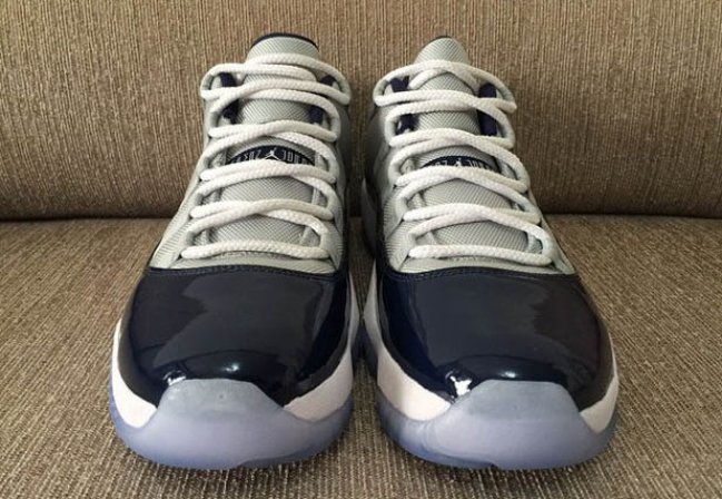 带来乔治城配色 Air Jordan 11 Low "Georgetown" 更多清晰实物图片。为了纪念 82 年乔丹率领北卡大学队击败乔治城大学队的经典比赛,乔丹的制胜一球成为了比赛的关键。