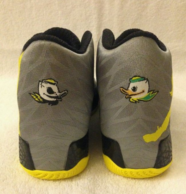 Air Jordan XX9 PE 俄勒冈鸭队配色亮相 eBay。银灰鞋身呈现出鸭子羽毛纹理,鞋舌和后跟的特殊 Logo 呈现出十足的 Oregon Duck 标识,细节点缀黄色,呈现出鸭队球队配色风格。