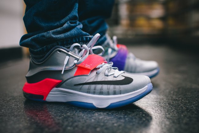 全明星配色的 KD7 "All Star" 将于 2 月 13 日正式发售,以纽约市地标布鲁克林大桥为设计灵感来源,银灰鞋身辅以渐变色魔术贴,Posite 材质也以特殊纹路呈现。 带来此款配色的上脚实拍,银灰鞋身点缀渐变色细节,上脚效果颇为抢眼! 货号:742548-090 发售日期:2 月 13 日