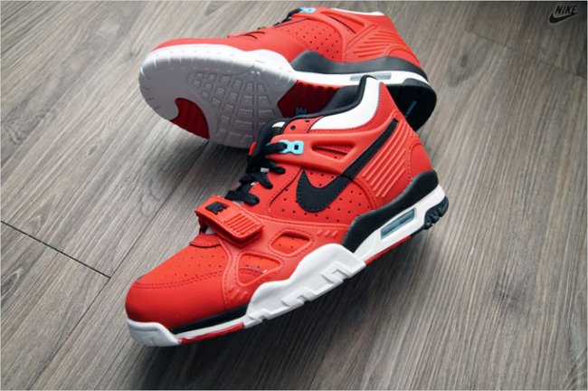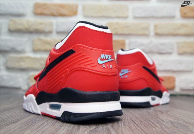 休闲训练鞋款 Nike Air Trainer 3 新色亮点,以校园红为主色调打造,点缀黑色细节,搭配白色中底,将于近期在 NSW 渠道发售。