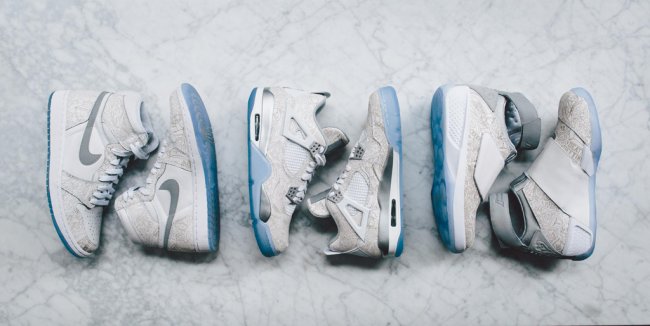 恰逢 2015 纽约全明星盛典,Jordan Brand 在品牌 30 周年之际,以此双主题打造了镭射 Air Jordan 纪念系列。采用了全明星系列的简洁风格打造,以珍珠为灵感,将乔丹同 Jordan 品牌故事在镭射纹理上呈现。白色的鞋身覆盖镭射纹理,而细节采用银灰 3M 反光材质打造,搭配蓝水晶大底。