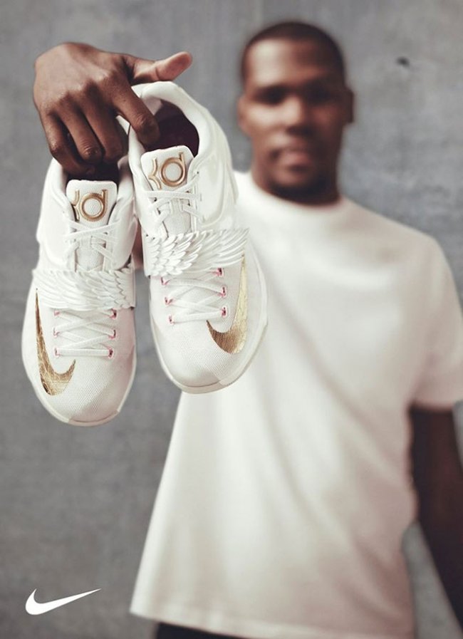为了缅怀杜兰特因癌症去世的阿姨 Aunt Pearl 而特别打造的此系列,为 KD 鞋款最具魅力的系列配色之一。此番在 Nike KD7 七代鞋型上的呈现,以简洁的白色鞋面点缀抢眼的金色细节,而来源于杜兰特后背纹身的天使飞翼魔术贴则增添了十足的亮点。后跟的 Kay Yow 粉丝带 logo 表现了它的身份,鞋款同配套服饰将于 2 月 19 日正式发售。 货号:706858-176 发售日期:2 月 19 日