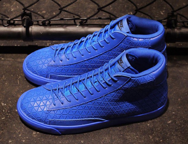 Nike Blazer Mid 同 Metric 几何方块鞋面的结合,继发售黑色版本后,此番 Nike Blazer Mid Metric QS 以全新的皇家蓝配色呈现。 在经典的 Blazer Mid 鞋型上以颇具潮流风范的鞋面打造,在舍弃鞋身 Swoosh 设计的同时,也带来了全新的感受。